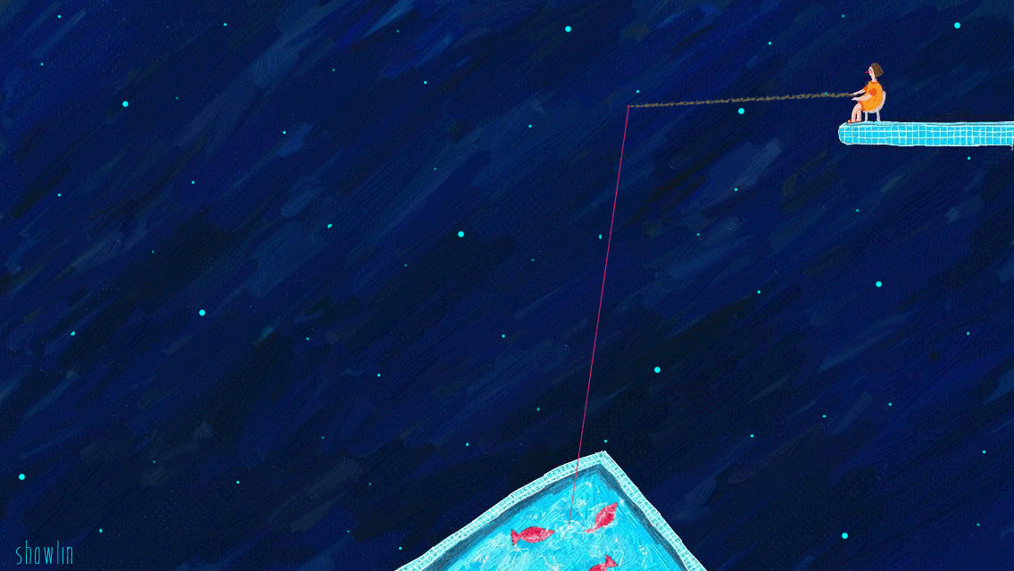 她拿起了鱼竿,甩向了星空的一边。