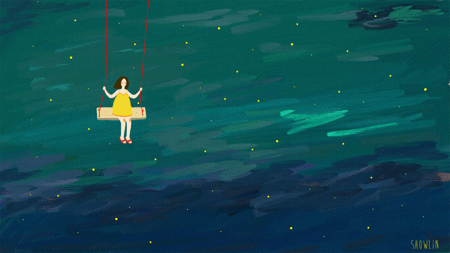 她在星空之上荡着秋千,她晃一晃,星星就闪一闪…